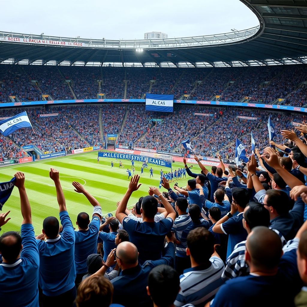尤其是在主场比赛中,阿尔希拉尔的球迷更是展现出了无与伦比的热情。每当球队走出球员通道,球迷们便会发出震天的欢呼声,整个球场瞬间沸腾。球迷们手举队旗,高声歌唱,挥舞着蓝白相间的旗帜,仿佛整个球场的每一寸土地都充满了支持的力量。这种现场气氛,毫无疑问是阿尔希拉尔球员们奋力拼搏的重要动力。